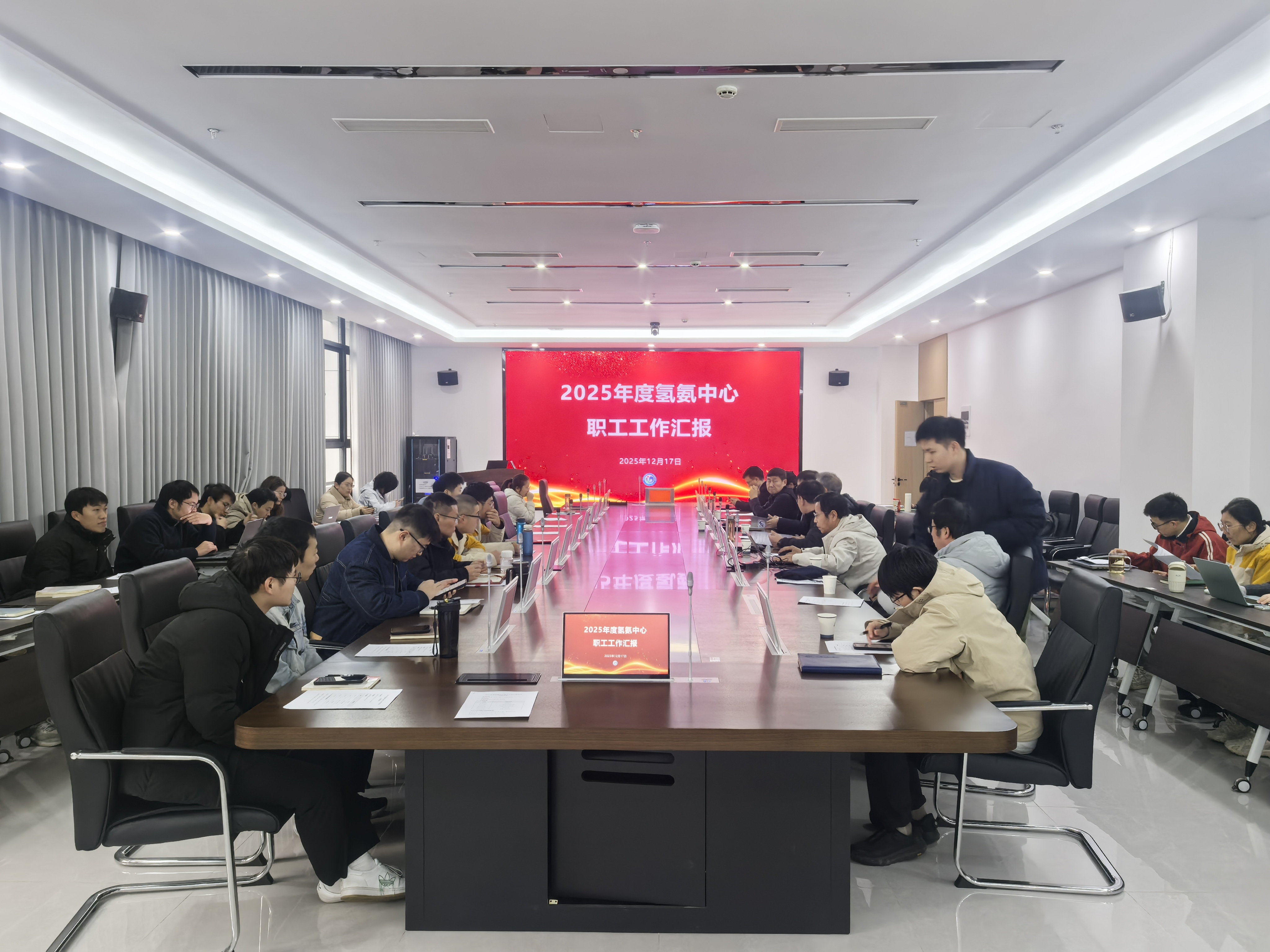 为系统总结年度科研进展与团队建设成效,进一步提升科研及成果产出效能,2025 年12月17日,能源研究院氢氨中心在院办公楼102会议室成功召开了年度职工工作汇报会议。本次会议不仅是中心内部一年工作的集中检阅,更是能源研究院强化科研组织、优化人才布局的重要环节。能源研究院高级顾问任晓曙、综合处副处长陈琪莅临指导,氢氨中心首席科学家罗广南、院长助理兼中心主任冯汉升、中心副主任、主任助理、课题组长及全体科研人员参会。